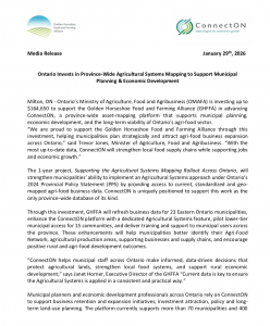 “ConnectON helps municipal staff across Ontario make informed, data-driven decisions that protect agricultural lands, strengthen local food systems, and support rural economic development,” says Janet Horner, Executive Director of the GHFFA. “Current data is key to ensure the Agricultural Systems is applied in a consistent and practical way.”